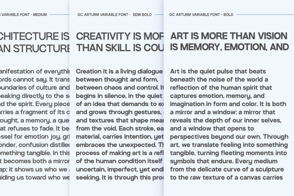 Bring flexibility, precision, and modern clarity to your design with GC Arturm – Modern Variable Sans.