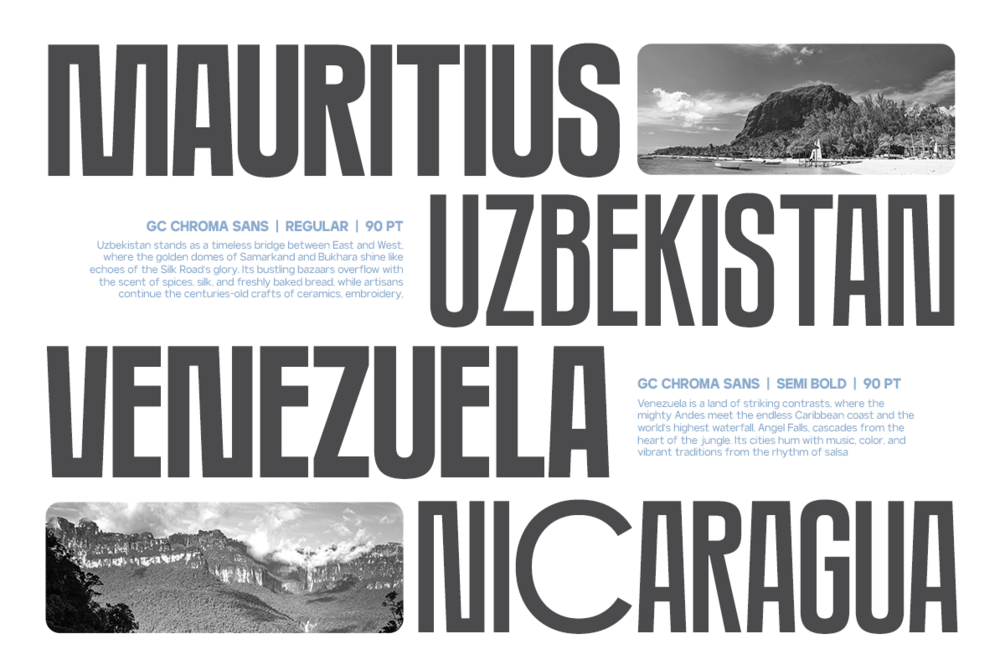 Balanced spacing, clean construction, and consistent rhythm make GC Chroma a timeless sans family that adapts effortlessly to modern design demands.