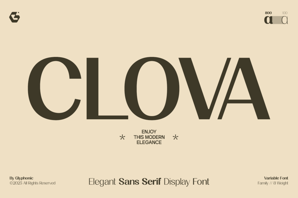 GC Clova – Elegant Sans Serif Display Font is a refined display typeface designed to deliver elegance, clarity, and modern sophistication. With its smooth geometry and graceful stroke contrast, it offers a confident yet stylish presence that shines across branding, editorial design, packaging, and high-end visual identities. Crafted to maintain simplicity while showcasing expressive details, it brings a polished and contemporary charm to any design project.