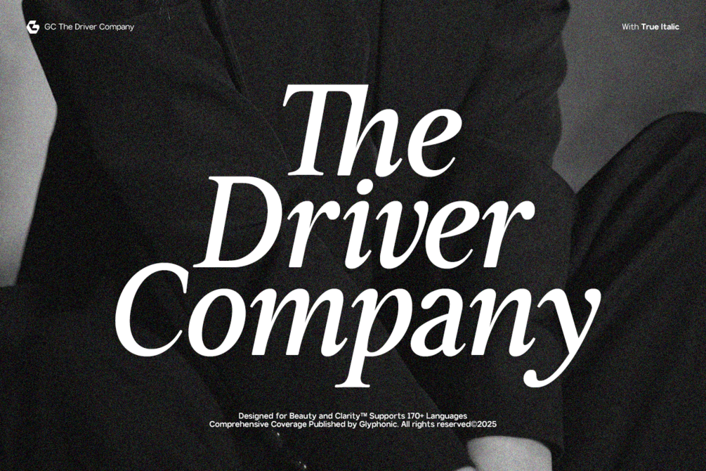 Bring expressive elegance and refined motion to your typography with GC Driver Company.