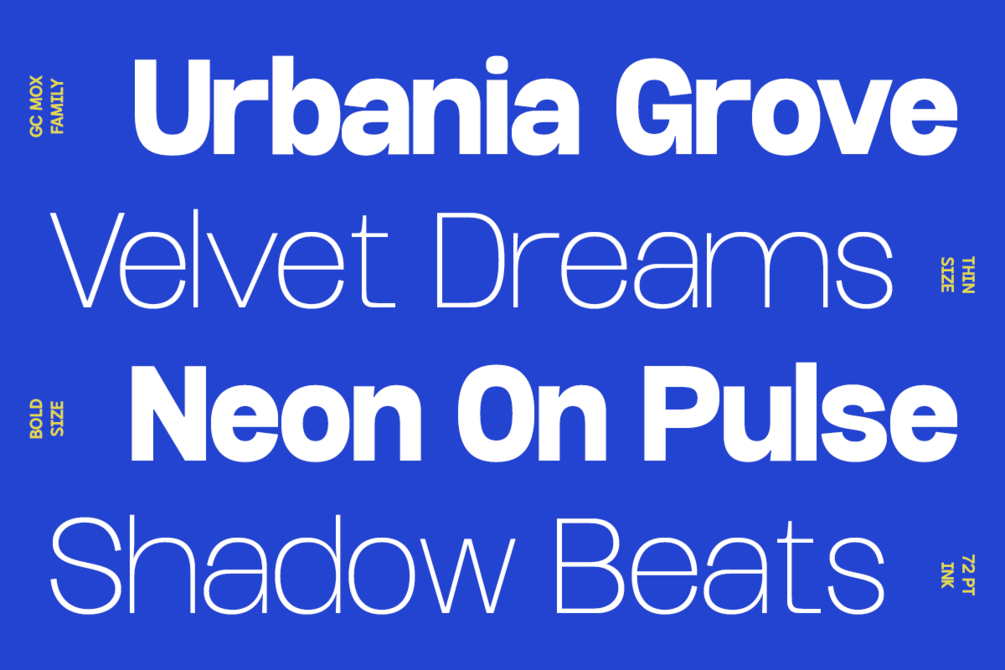With its strong geometric shapes, wide proportions, and adjustable variable styles, GC MOX gives designers the freedom to adapt typography to any creative direction. Whether you need a bold statement headline or a flexible layout solution, this font delivers both energy and versatility.